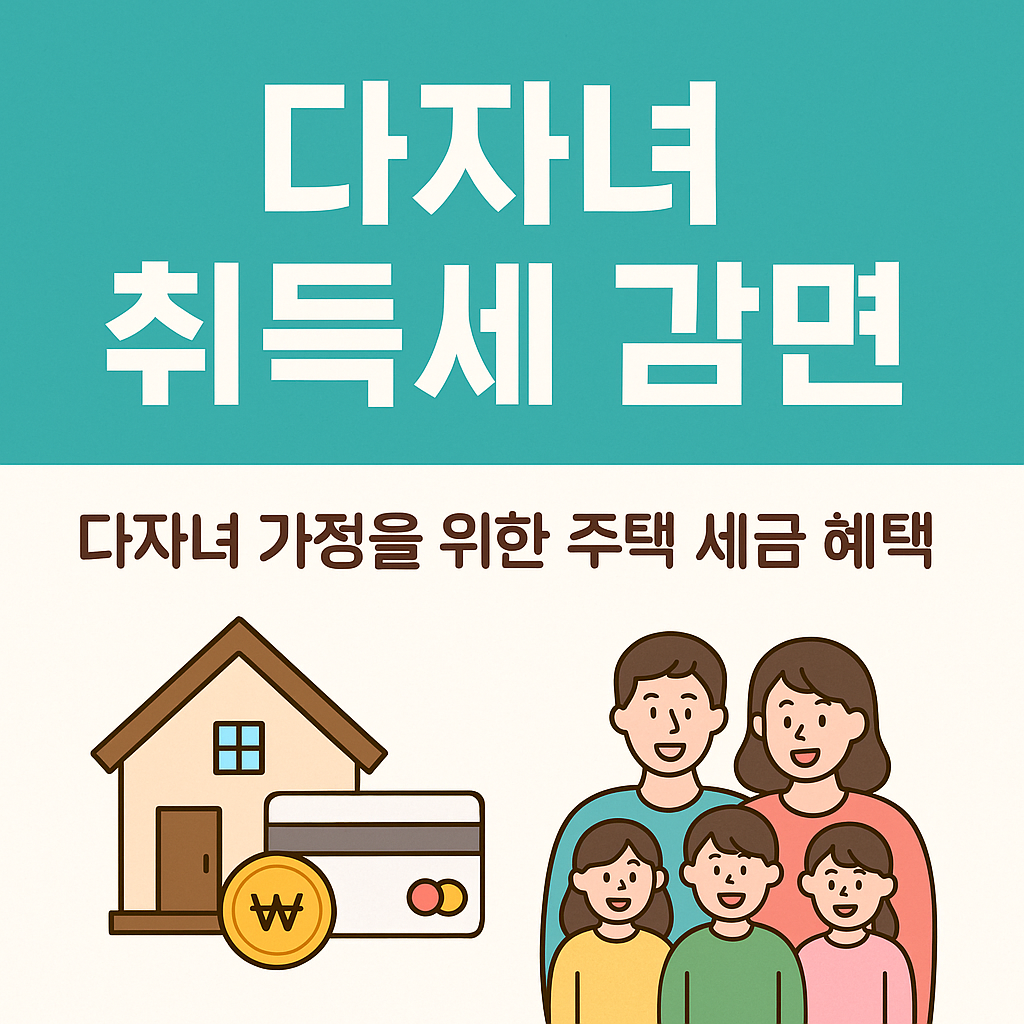 집을 구입할 때 가장 부담되는 비용 중 하나가 바로 취득세입니다.정부와 지자체에서는 다자녀 가정의 주거 안정을 위해 취득세 감면 제도를 운영하고 있는데요,오늘은 다자녀 가정이 받을 수 있는 취득세 감면 혜택과 신청 방법을 정리해드립니다.▶ 다자녀 취득세 감면이란?세 자녀 이상을 둔 가정이 주택을 구입할 경우, 취득세를 일정 비율 감면해주는 제도다자녀 가정의 주거 안정과 양육 부담 완화 목적일부 지자체에서는 둘째 자녀부터도 지원 확대 시행👉 출산·양육 가정에게 주택 마련 부담을 줄여주는 복지 혜택입니다.▶ 지원 대상만 19세 미만 자녀 3명 이상을 둔 가정 (입양 자녀 포함)부부 공동 명의, 한부모 가정도 가능주택을 취득하는 경우 (신규, 분양, 매매 포함)▶ 감면 범위전액 면제 또는 50% 감면 (지자..