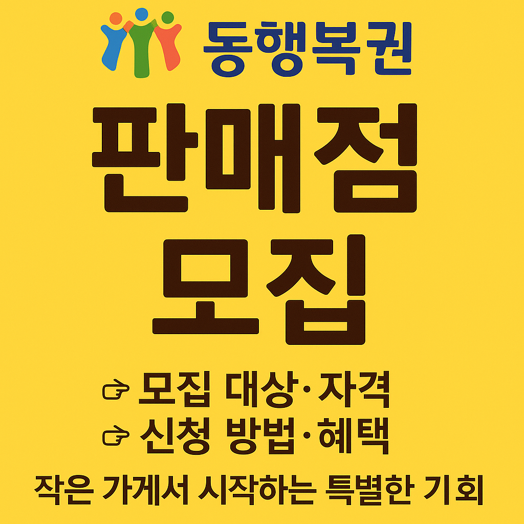 로또 6/45, 연금복권, 즉석식 복권 등 많은 사람들에게 설렘과 희망을 주는 동행복권.이 복권을 판매할 수 있는 공식 판매점 모집이 진행되고 있습니다.“혹시 나도 할 수 있을까?” 고민하시는 분들을 위해, 오늘은 동행복권 판매점 모집 조건, 신청 방법, 혜택까지 정리해드릴게요.✅ 동행복권 판매점 모집이란?복권위원회(기획재정부 산하)에서 운영하는 공식 복권 판매 대리점 모집 제도개인이나 소상공인이 신청하여 복권 판매점 운영 가능판매 수수료와 추가 수익을 통해 안정적인 부업 또는 본업으로 활용 가능👉 매주 수백만 명이 찾는 복권 판매, 그만큼 꾸준한 수요와 안정성이 장점입니다.✅ 모집 대상 및 자격만 19세 이상 개인 또는 법인소규모 점포(편의점, 담배가게, 문구점 등) 보유자 우대장애인, 국가유공자, ..