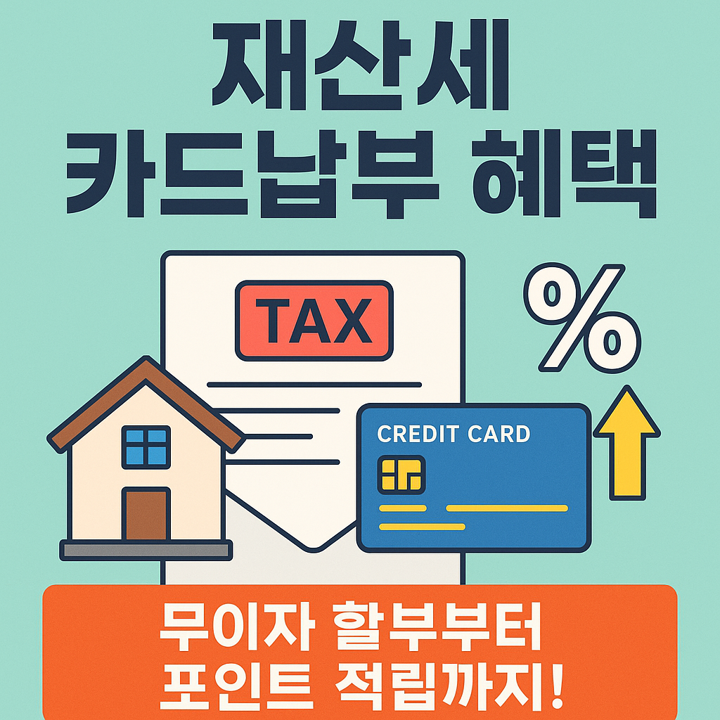매년 7월과 9월이면 찾아오는 고정지출, 바로 재산세입니다.현금이 빠져나가는 게 부담이라면?신용카드 납부를 활용하면 부담을 줄이고 혜택까지 챙길 수 있어요!📌 재산세란?토지, 건축물, 주택 등을 소유한 사람에게 부과되는 세금으로7월(주택·건축물), 9월(토지) 두 차례 나눠 고지됩니다.📅 납부 기한1기분: 매년 7월 16일 ~ 31일2기분: 매년 9월 16일 ~ 30일💳 재산세 카드납부 가능한 곳국민, 신한, 삼성, 롯데, 현대, 하나, 농협, BC 등 주요 카드사납부 채널:위택스 (www.wetax.go.kr)지방세입계좌 납부 (간편송금)지방세 납부 앱 (서울시ETAX, 스마트위택스 등)ARS 자동납부은행 CD/ATM기🎁 카드납부 시 받을 수 있는 혜택카드사혜택 예시 (※ 매년 변동 가능)국민카..