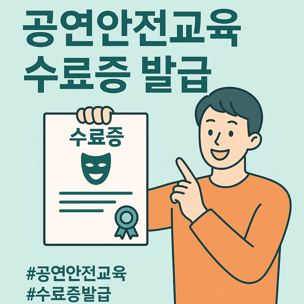 대형 공연이나 행사에 참여하려는 기획자·스태프라면 꼭 준비해야 하는 게 있습니다. 바로 공연안전교육 수료증입니다.이 교육은 단순한 형식이 아니라, 공연 현장에서 발생할 수 있는 안전사고 예방과 대응 능력을 키우기 위한 필수 과정이에요.오늘은 공연안전교육 수료증 발급 방법, 신청 절차, 유효기간까지 정리해드릴게요.✅ 공연안전교육이란?문화체육관광부와 한국산업안전보건공단에서 지정한 법정 의무 교육공연 기획·제작, 무대·조명·음향 스태프, 안전관리 담당자 등이 대상공연 중 발생할 수 있는 화재, 전기사고, 관객 안전사고 등에 대비👉 공연 종사자는 반드시 이 교육을 수료하고, 수료증을 제출해야 활동이 가능합니다.✅ 공연안전교육 수료증 발급 절차교육 신청한국산업안전보건공단 또는 지정된 교육기관 접속회원가입 후 공..